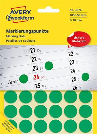 Etikett, 18 mm, kör, AVERY ZWECKFORM, zöld, 1056 etikett/csomag